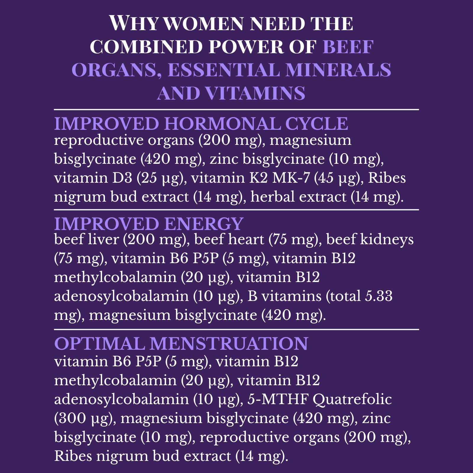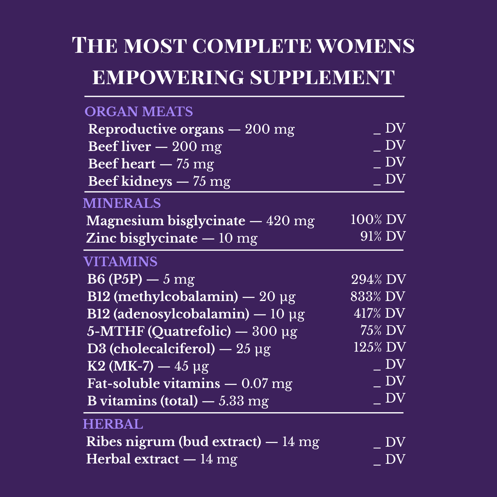 PrimeHer contains highly concentrated nutrients such as iron, B12, and vitamin A derived from natural organ extracts. Because these are potent, we recommend consulting your healthcare provider before using PrimeHer during pregnancy or while breastfeeding.